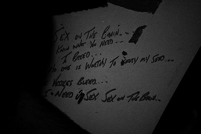 "Sex on the beach... I know what you need... To breed... To carry my seed... The vessels bleed... I need sex on the beach..."